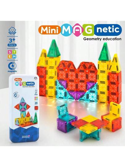 Mini Magnetic Tiles With Iron Box, 26/56PCS Travel Size Magnet Building Blocks Toy Set, Protable Construction Block Toys Educational Learning Sensory Toys For 3+ Year Old Boys Girls Birthday Gift - Multicolor - View 1