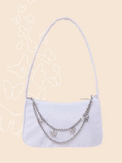 Fashionable Solid Color Shoulder Bag - White - View 1