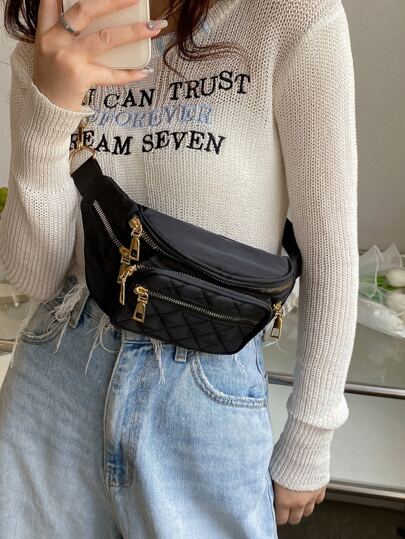 Lightweight,Business Casual Mini Quilted Multi-pocket Waist Bag For Teen Girls Women College Students,Rookies & White-collar Workers Perfect for Office,College,Work ,Business,Commute,Outdoors, Travel, Outings - Black - View 1