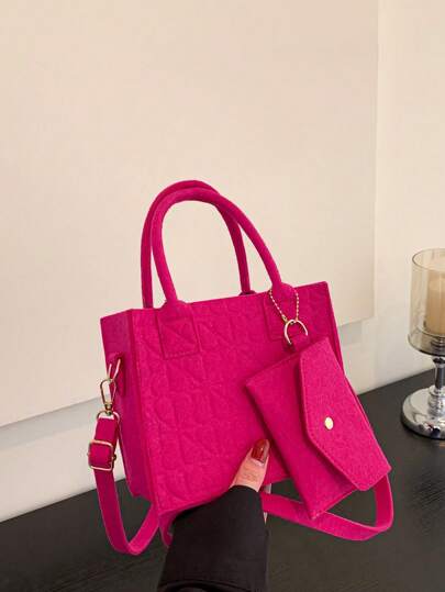 Mini Square Bag Double Handle With Coin Purse - Hot Pink - View 1