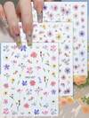 Bộ 3/6 miếng dán móng tay hình hoa nổi 5D, hình dán nghệ thuật hoa sống động cho thiết kế móng tay mùa xuân/hè.
