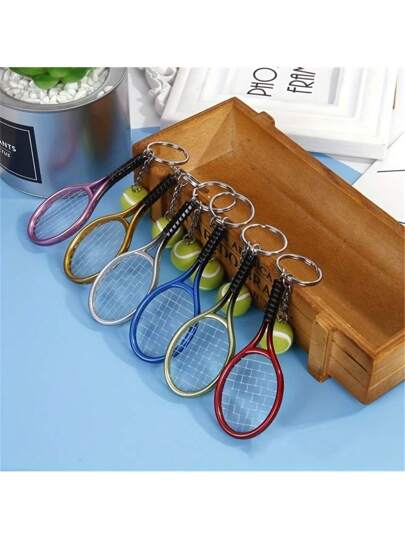 Miniature Simulation Tennis Racket Keychain - The Perfect Gift For Tennis Fans, Women And Couples Halloween Car Accessories Bag Charm School Cute Goth Y2k - Multicolor - View 1