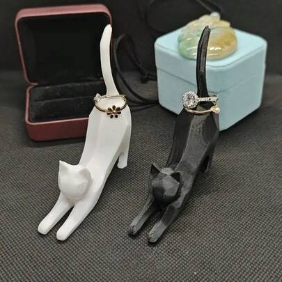 Minimalist Black & White Cat Ring Display Stand, Creative Cat Figurine, Ring Earring Necklace Organizer - Multicolor - View 1