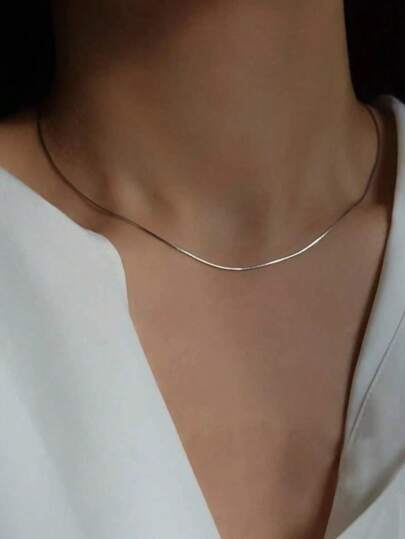 Minimalist Chain Necklace - Silver - View 1