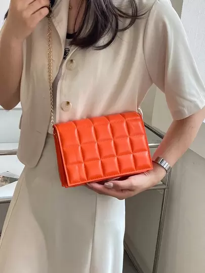 Mini Minimalist Quilted Chain Crossbody Bag - Orange - View 1