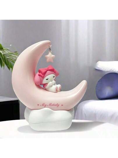 Miniso 1pc Sanrio My Melody LED Decorative Figurine, Crescent Moon Dream Design, Resin Nightlight, Bedroom Decor, Perfect Holiday & Birthday Gift (1pc Random Delivery) - Pink - View 1