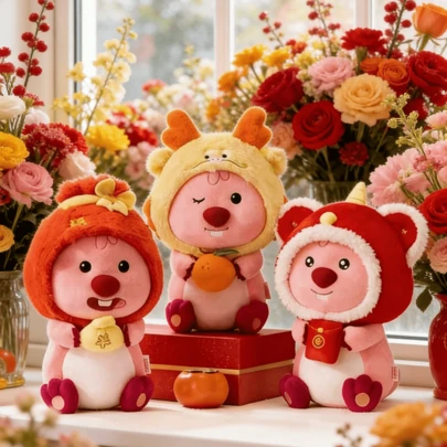 Miniso 33cm/12.99in LOOPY Series Plush Doll Toy, Costume Surprise Bag Stuffed Doll, Holiday Anniversary Room Decor Hanging Ornament Gift - Red 1 - View 1