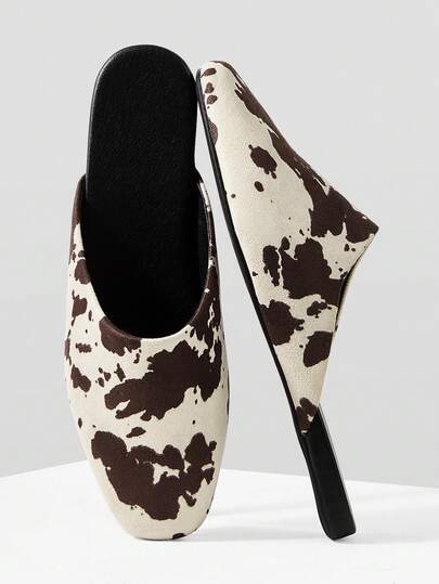 Mnmlis Women Shoes Spring And Summer New Models, Simple Square Design Home Dating Afternoon Tea Popular Mule Flat Shoes - cow - View 1