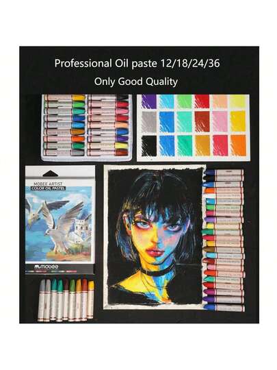 Mobee Oil Pastel Set, 12/18/24/36 Colors, High Quality Korean Formula, Suitable For Student Painting & Sketching, Vibrant Colors, Back To School Colored Pastel Set - Multicolor - View 1