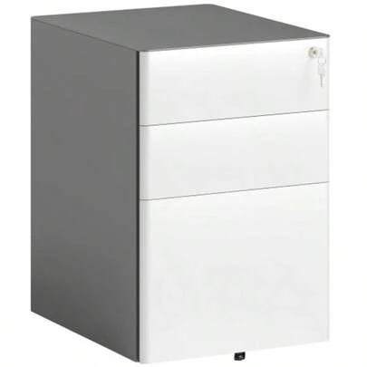 Mobile 3-Drawer Filing Cabinet, Lockable Office Cabinet With Hanging Filing System, Storage, Steel, 39 X 48 X 59 Cm, White And Grey - White - View 1