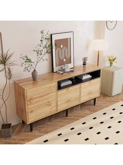 Modern Wooden Sideboard With Three Doors And Shelves, 160 X 35 X 76 Cm, Easy Assembly, Space-Saving Design, Robust And Reliable - Brown - View 1