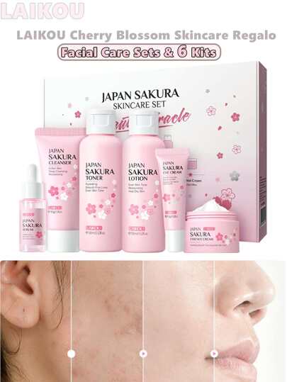 LAIKOU Laikou Cherry Blossom Skincare Set 6 Gift Set Cherry Blossom Facial Moisturizing And Moisturizing Japan Sakula Skincare Set,Cherry Blossom Skincare Set,Skincare Gift Set For Teenage Girls - Cleanser,Serum,Eye Cream,Essence Cream,Facial Care Sets & Kits,Travel Set For All Skin Types 6 Piece Skin Care Set, Women's Facial Care Set, Skin Care Gift Set, Cherry Blossom Extract Facial Care Set, Cherry Blossom Extract Tool Cherry Tree, Gift Set For Girls, Sakura Moisturizing Skin Care Set (Pink) - Pink - View 1