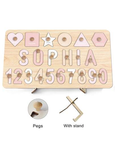 Montessori Toddler Toys, Customizable Wooden Name Puzzle For 1-3 Years Old, Personalized Name Puzzle, Easter Children's Gift, Wooden Toys, 3D Letter Puzzle - Pink and White Three Rows All With Nails + Brackets - View 1