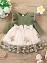 Baby Girls Floral Design Contrast Mesh Elegant Cute Sleeveless A-Line Dress, Summer