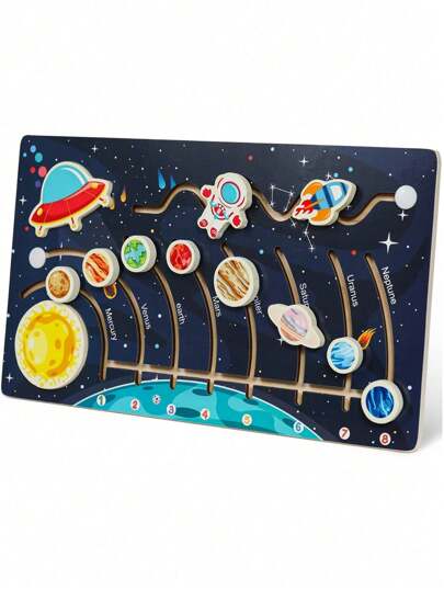 Movable Solar System Puzzle For Kids 3-6, Wooden Space Toys For Kids, Planets For Kids Preschool Learning Activities, Gift For Boys, Girls - Multicolor - View 1
