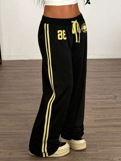 Muchica Black Knit Printed Casual Collegiate Style Pants,Summer Outfits For Women , Women's Joggers - Black - View 1