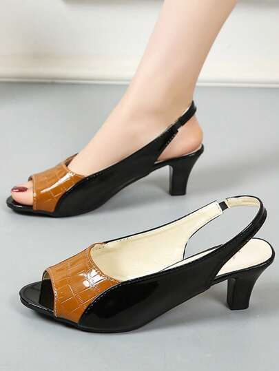 Multicolor Open Toe Chunky Heel Mule Sandals, Versatile Plus Size Leather Mid Heel Real Leather Dress Shoes For Middle-Aged Mothers - Black - View 1