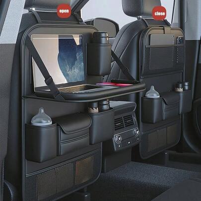 Multifunctional Car Seat Back Storage Organizer With Tray, Fits Laptop, Leather Kick Mat, Convenient Storage And Office Solution - Multicolor - View 1