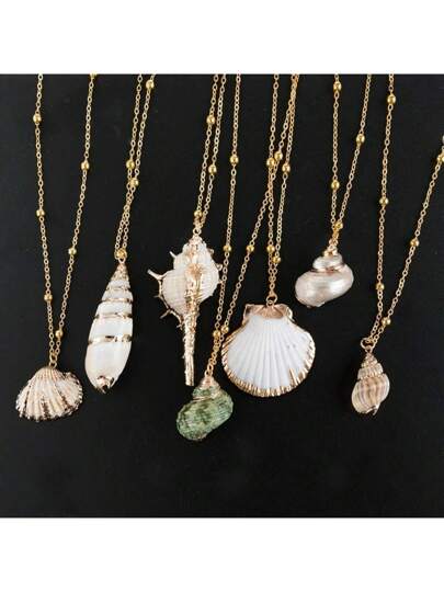 1pc New Style Gold Edged Ocean Themed Necklace, Multiple Designs - Gold - View 7