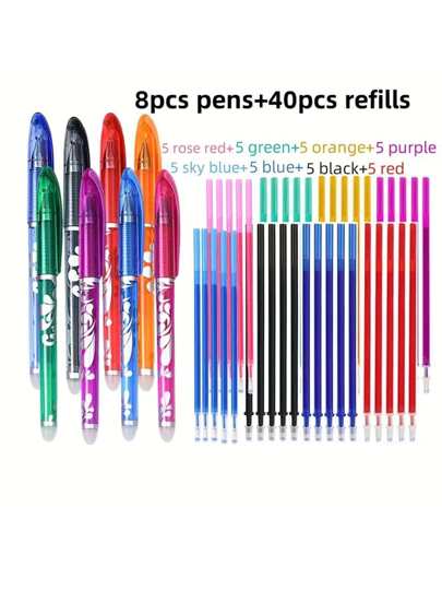 48 Piece Erasable Gel Pen Set, 8 Colors, Replaceable, Pocket Clip Pen, Ultra-Fine Tip, Round Plastic Body, Click To Open The Cover, Suitable For School And Office Supplies, Homecoming Gifts - Multicolor - View 1