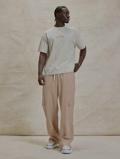 Musero Baggy Straight Leg Double Patch Cargo Style Pocket Elasticated Drawstring Waistband Pants Winter Essentials - Pink - View 1