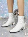Women's Black Patchwork Ankle Boots, Block Heel, Comfortable Block Heel, Zipper Closure, Waterproof Platform, Slim Fit