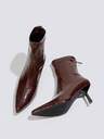 Women's Brown Ankle Boots And Short Boots, Chunky 6cm High Heel Block Heel Iron Head Short Boots With Back Zipper And Knit Patchwork