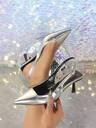 Women's Black 4cm Kitten Heel Closed Toe Pumps, Patent Leather Formal Shoes, High Heel Mules, Pointed Toe Bowknot High Heel Slides