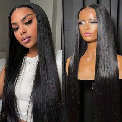 NATAN Tang Long Fiber Wigs 48inch Rose Net Cap Straight Hair Unisex-Adult Party Cosplay Costume Wigs, High Temperature Synthetic Fiber, Natural Black Blonde Coffee Pink With BB Clip And Hairnet - Natural & Black - View 1
