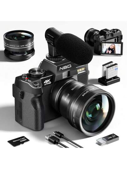 NBD 48MP 4K Video Camera, 3.0" Flip Screen Vlog Camera, Wide Angle Lens, 16X Digital Zoom Photography Camera (Black) - Black - View 1