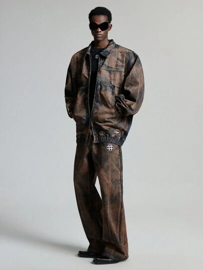 NEON BLANC Men's Street Fashion Woven Windbreak Denim Long Sleeve Jacket - Rust Brown - View 1