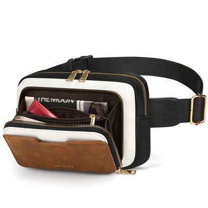 NEWHEY Men's Waist Bag, Unisex Leather Waist Pack, Waterproof Multi-Function Sling Bag, Adjustable Strap Vintage Chest Bag, Suitable For Work, Running, Travel And Parties, Available In Black And Brown With White Accents - Multicolor - View 1