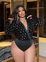 NU&NOW Plus Size Fashionable Sexy Sheer Glitter Mesh Bodysuit
