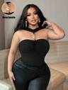 NU&NOW Plus Size Women's Knitted Shiny Elastic Fabric Plush Bandeau Cropped Top + Mini Skirt 2 Piece Set, Sexy Outfit For Autumn/Winter, Suitable For Party, Banquet, Graduation, New Year, Black Suit, Stylish Urban Office Lady, Chic Date Night