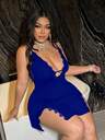 NU&NOW Plus Size Women's Sexy Party Spaghetti Strap Shiny Elastic Mesh Wide Leg Jumpsuit, Black