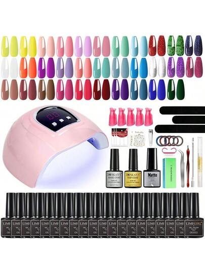 Nail Art Set Acrylic Manicure Kit Led Uv Lamp Dryer Matte + Glossy Top & Base Coat Gel Nail Polish Accessories All Seasons - Yellow - View 1
