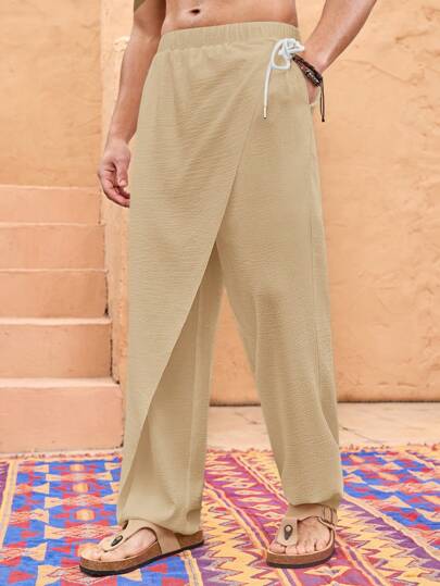 Manfinity VCAY Men's Woven Casual Loose Fit Solid Elastic Waist Straight Leg Pants - Coffee Brown - View 1