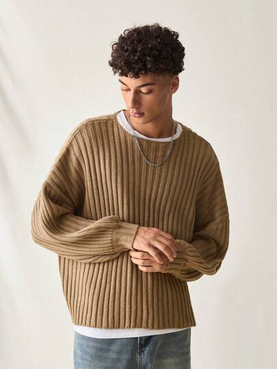 Manfinity VCAY Men Knitted Casual Loose Fit Long Sleeve Sweater - Mocha Brown - View 1