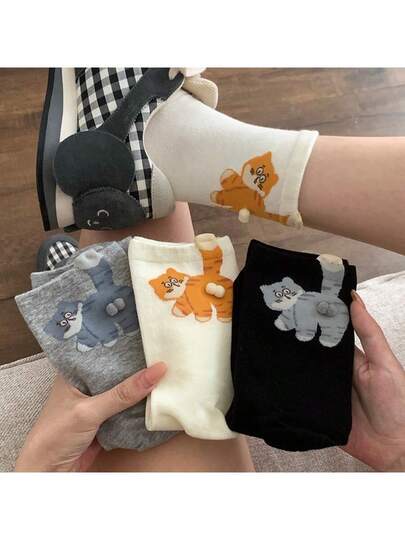 New 3D Handmade Cat Egg Mid-Calf Socks, Cute & Quirky Animal Socks For Men & Women - Multicolor - View 7