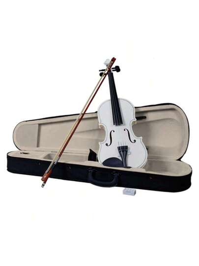 New 4/4 Acoustic Violin Case Set With Bow & Rosin, White Durable Hard Shell For Violin Protection & Travel - White - View 1