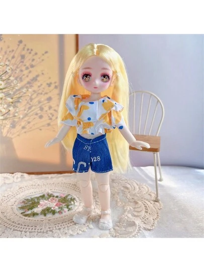 New Arrival 23cm Cartoon Character Doll With Starry Eyes, 7 Points Bjd Movable Joints. Perfect For Children's Toy, Diy Doll Play, Girls' Birthday, Valentine's Day And Halloween Gift. - Yellow - View 1