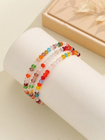 New Arrival 3pcs Random Colorful 4mm Cone Shaped Beaded Glass Crystal Bracelet As Birthday, Festival, Party Gift - Multicolor - View 1
