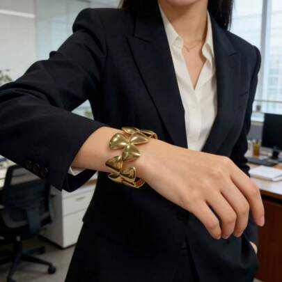 Vòng tay hở bằng sắt mới về, phụ kiện trang trí hình cỏ bốn lá 5 cánh bằng vàng thời trang và đa năng.