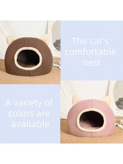 New Cat Bed Suitable For All Seasons, Semi-Enclosed Autumn/Winter Cat House With Cushion, Warm Cat Nest For Sleeping - Multicolor - View 1