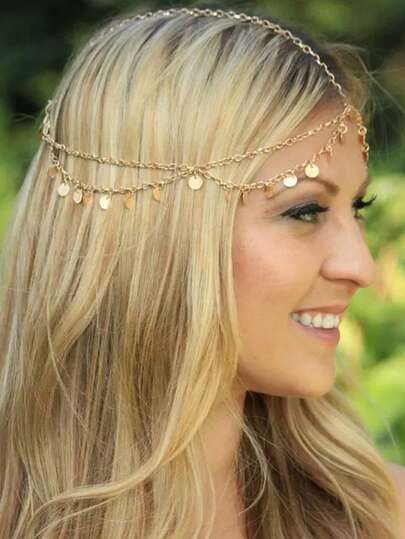 New European And American Sequin Wavy Tassel Chain Headband Hair Accessories - Multicolor - View 1