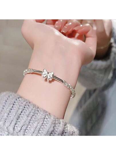 New Floral Bow Silver Bracelet, Sweet, Lightweight, Luxurious, Exquisite Personalized Sliding Bracelet - Floral Bracelet - View 1