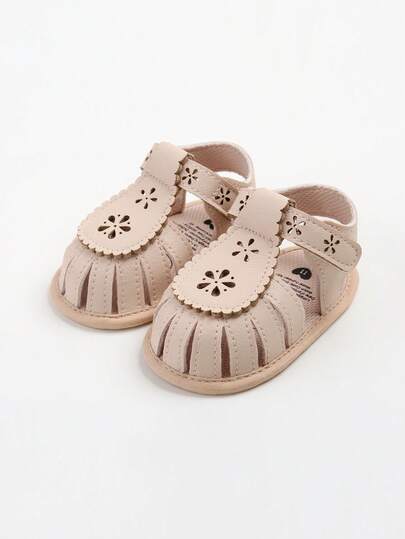 New Floral Soft Bottom Infant Sandals Infant Toddler Infant Girls PU Leather Soft Open Toe Summer Sandals Flower Princess Flat Shoes - Apricot - View 1