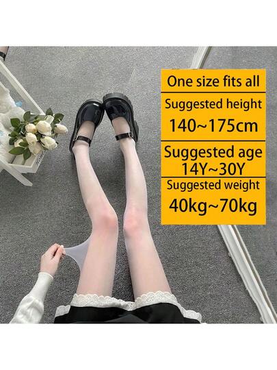 New Japanese-Style Girls' White Princess Tights, Sweet Thin Lace Leggings For Girls, 1pc - White - View 1