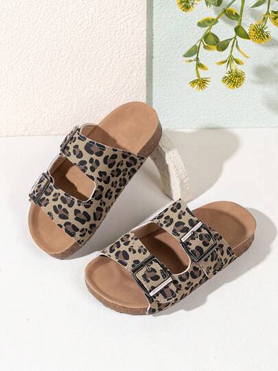 New Kids Anti-Slip Durable Soft Sole Fashionable Leopard Print Birkenstocks Style Street Beach Sandals - Khaki - View 1