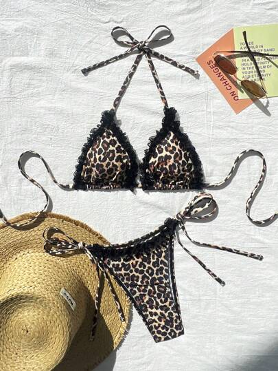 New Leopard Print Halter Swimwear Set, Beach Summer Outfits For Women - Multicolor - View 1